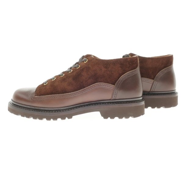 今回お買取させていただいたのは、三陽山長(サンヨウ ヤマチョウ)のブラウンマウンテンブーツでございます。上質なレザーとスエードを組み合わせたミッドカットデザインで、トリプルステッチによる堅牢な仕上がりが魅力の一足です。軽量なビブラムソールを採用し、ライニングを省くことで軽快な履き心地を実現。重厚なルックスながら、街履きにも適した汎用性の高いモデルです。状態はBランクですが、しっかりとした作りで長くご愛用いただけるコンディションです。