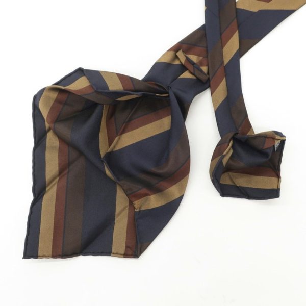 TIE YOUR TIE(タイユアタイ)セッテピエゲストライプネクタイ/ネイビー×ブラウン/状態ランクB/イタリア製/をお買い取りさせていただきました。さらっとしたタッチの上質なシルク生地を用いたセッテピエゲストライプネクタイです。美しい配色も魅力で、ハンド感のあるセッテピエゲ仕立てが高級感を感じさせます。