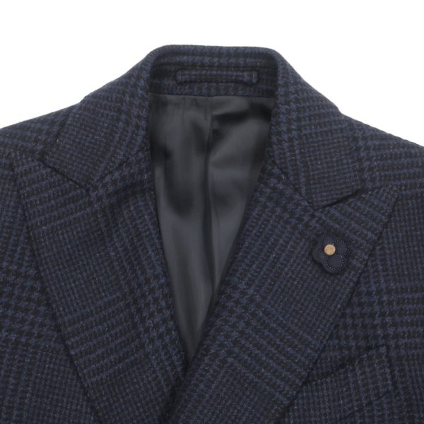 軽いアンコン仕立て/LARDINI(ラルディーニ)チェック柄ダブルブレストコート/メランジダークブルー×ブラック/状態ランクA/イタリア製/をお買い取りさせて頂きました!