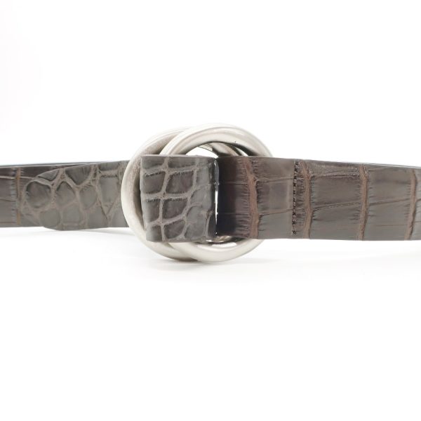 THE SOLE(ザソール)リアルクロコダイルベルト/ブラウン/状態ランクB/ダブルリングベルト/