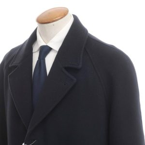 今回のコートは、落ち着いたダークネイビーが知的な印象を与え、スーツスタイルにも相性抜群。カシミヤ混の滑らかなタッチと、美しい襟元の表情が魅力で、オンオフ問わず活躍する万能アウターです。上質素材ならではの軽さと保温性があり、長く愛用できる価値ある一着といえます。