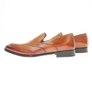 FRANCESCO BENIGNO(フランチェスコ ベニーニョ)は、鮮やかなパティーヌ技法とシャープな木型設計で知られるイタリアの名門シューズブランドです。今回お買取りさせていただいたアンティークブラウンのUチップローファーは、美しいグラデーションが魅力のパティーヌカーフを採用した一足。ロングノーズのスクエアトゥがエレガントな印象を強め、ドレッシーな装いからジャケットスタイルまで幅広く合わせられるモデルです。