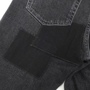 高価買取のポイントとしてまず重要なのが、色落ちやパッチ部分のコンディションです。ブラックデニムはフェード感が出やすい反面、過度な色抜けやパッチワーク部分の擦れ・縫製の緩みがあると評価に影響します。今回のように全体のトーンが保たれている状態は、査定面でもプラス要素となります。