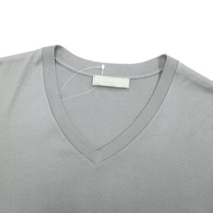 高価買取のポイントは、まず生地表面のコンディションです。Tシャツは着用頻度が高くなりやすいため、首元のヨレや伸び、毛羽立ち、色褪せの有無が査定に大きく影響します。特にVネック部分はダメージが出やすいため、型崩れの少ない状態は評価が高くなります。また、シミや汗ジミが見られないことも重要なポイントです。
