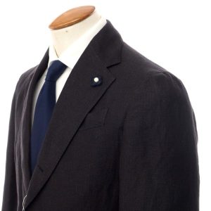LARDINI(ラルディーニ)は、イタリアを代表するファクトリーブランドとして、高い仕立て技術と洗練されたデザインで支持を集めています。今回お買い取りさせていただいた3つボタンスーツは、チャコールグレーの落ち着いた色合いに、ヘリンボーン織りの表情豊かなリネンコットン素材を用いた一着。都会的でありながら、どこか軽やかさを感じさせるラルディーニらしい仕上がりです。