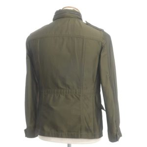 本モデルで評価ポイントとなったのが、やや粗い織り感をもつポリエステル生地とショート丈のコンパクトなシルエットです。軽快な着心地でありながら、ミリタリー由来のポケット配置や立体的な構造がデザインアクセントとして効いています。アウターはシルエットの美しさと生地コンディションが査定額に大きく影響します。