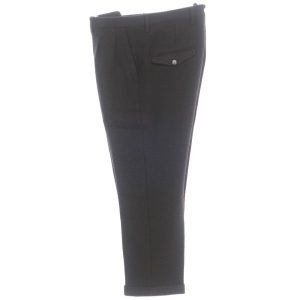 VIGANO(ヴィガーノ)は、イタリアらしい美しいシルエットと実用性を兼ね備えたパンツ専業ブランドとして知られています。今回お買い取りさせていただいた秋冬向きウールカジュアルスラックスは、ブラウン×ブラックのヘリンボーン織が特徴的で、落ち着いた中にも奥行きのある表情を持つ一本です。