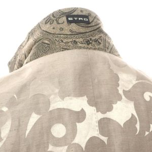 ETRO(エトロ)更紗柄カジュアルジャケット/ベージュ/状態ランクA/イタリア製/ペイズリー/をお買い取りさせていただきました。ドライタッチなリネンシルク生地を使用した、更紗柄2Bカジュアルジャケットです。更紗柄が他とは一味違った雰囲気を醸し出しており、すっきりとしたシルエットも魅力的で、エトロらしいデザイン性の高さが窺える一着です。