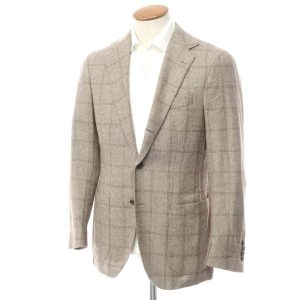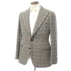 2025年10月20日 PINOLERARIO Revival(ピーノレラリオ リバイバル)ウールツイードジャケット/チェック柄/ライトベージュ×ブルー/状態ランクB/イタリア製/ アウター 6000~12000円
